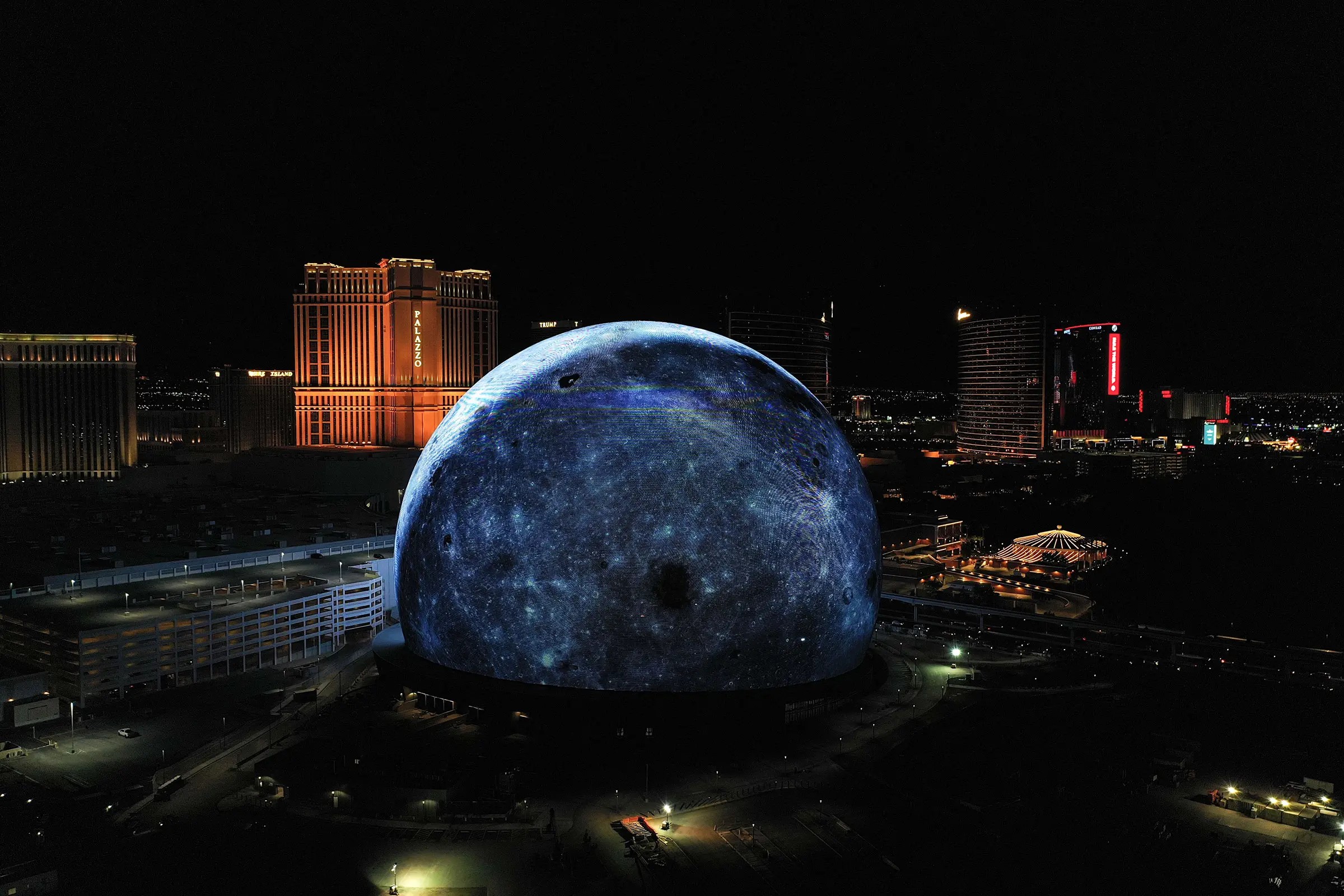 拉斯维加斯球形剧院2023年7月开放,高约112米,外墙是全球最大LED屏,由123万颗LED灯组成。项目造价23亿美元,举办U2、Dead & Company、后街男孩演唱会及体育赛事。《时代》写道:“可呈现球体、行星或任何图像;内部配有16万平方英尺曲面屏幕和先进音响系统。”