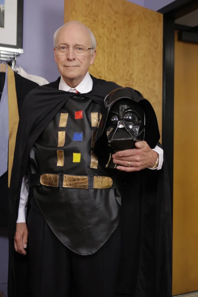 担任副总统期间,切尼被深夜档电视喜剧节目戏称为“达斯·维德(Darth Vader)”。对此他淡然处之,还幽默地表示能与《星球大战》反派角色相提并论实属荣幸,甚至在《今夜秀》节目中身着维德装扮亮相为其回忆录宣传造势。