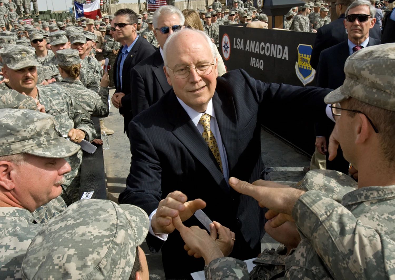 因为与布什家族渊源深厚且政府经验丰富,小布什在2000年大选时委托切尼负责副总统人选遴选,最终却认定这位遴选人本人是最佳人选。重新踏入政坛之际,切尼从曾执掌五年(1995—2000年)的哈利伯顿(Halliburton)石油服务公司获得了3500万美元离职补偿。这家公司在伊拉克战争期间成为政府主要承包商,切尼与石油业的关联由此成为反战人士频繁抨击的焦点。