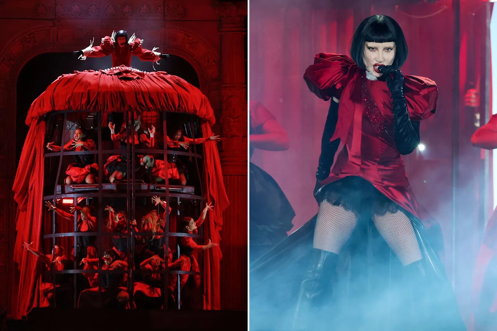 这场五星级、全力回归极致夸张风格的Mayhem Ball巡演,并不是这名26岁设计师与她的第一次合作。除了负责巡演第一幕的所有造型之外,刘易斯还为她设计了2025年格莱美奖颁奖礼的造型,以及《Disease》MV(以手工染色丝绸打造的灰色幻影礼服,营造腐败感)和《Abracadabra》MV(以红色骨架丝绸礼服展现刘易斯对束身衣的热爱)服装。今年12月,当Gaga把Mayhem Ball巡演带到澳大利亚时,刘易斯的设计将呈现在成千上万家乡人面前。“知道自己的服装将在家乡被看到,是非常酷的体验。我非常兴奋大家能亲身感受它,对我来说这就是一个完整的循环。”刘易斯在墨尔本通过Zoom说道。