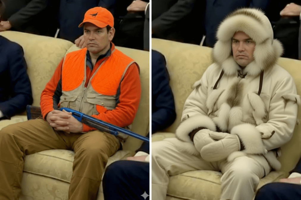 另一条帖子来自资本市场交易员彼得·R·汉恩(Peter R. Hann),画面中的鲁比奥戴着一顶毛皮帽子,类似格陵兰传统服饰的一部分,配文是:“鲁比奥意识到自己必须当格陵兰的总督(Governor)。”(原文拼写错误:Goverrnor)这条帖子已被浏览超过80万次。在另一条由Wander公司首席营销官凯尔·蒂比茨(Kyle Tibbits)发布的帖子中,鲁比奥身穿橙色服装、手持枪械。配文写道:“鲁比奥意识到自己必须成为明尼苏达州州长。”