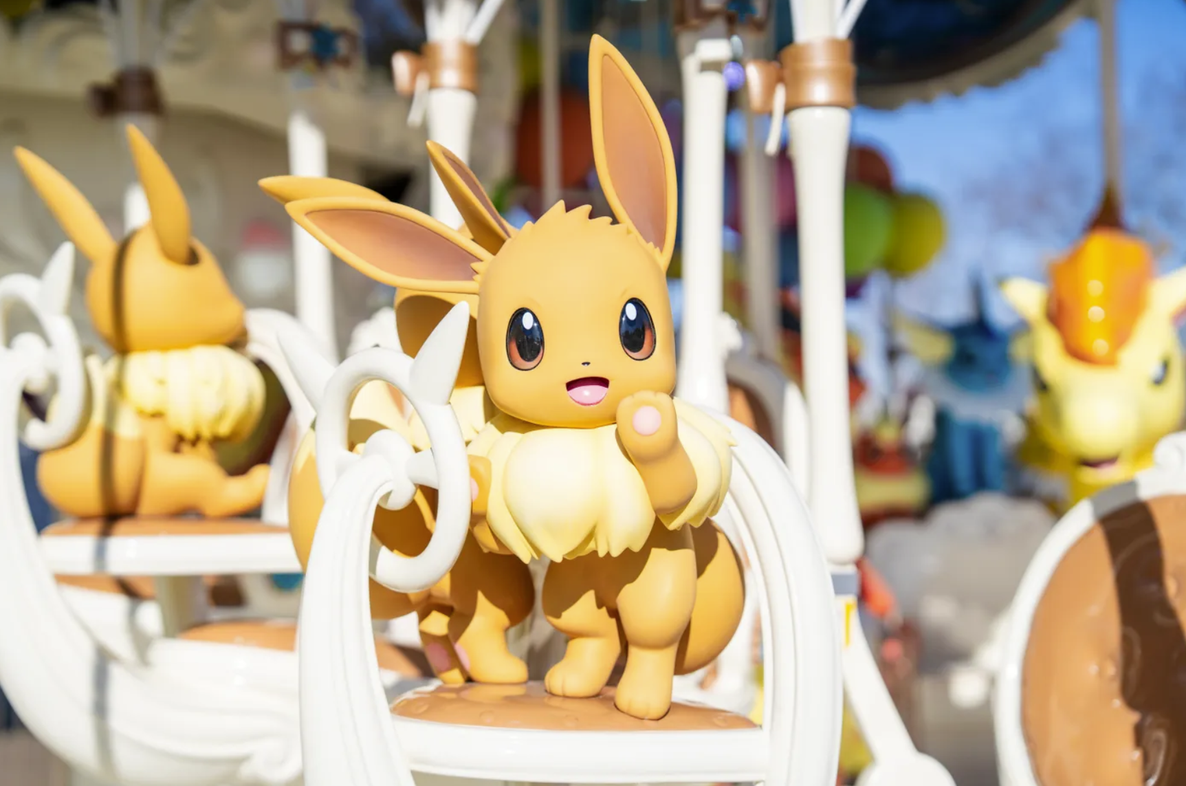 关都宝可梦乐园内共有两项游乐设施:伊布的“Vee Vee 航行”旋转木马(Vee Vee Voyage),以及皮卡丘的“Pika Pika 乐园”旋转设施(Pika Pika Paradise)。游客可以在旋转木马上选择自己最喜欢的伊布进化形态,还可以选择小火马和烈焰马(包括它们的伽勒尔形态)。皮卡丘的旋转设施则由各种可爱的电属性宝可梦提供“电力”。皮丘、雷丘、正电拍拍、负电拍拍、帕奇利兹、电飞鼠、咚咚鼠、托戈德玛尔、莫鲁贝可和布拨都会贡献能量,让乘客在缓慢旋转中操控车厢上下起伏。