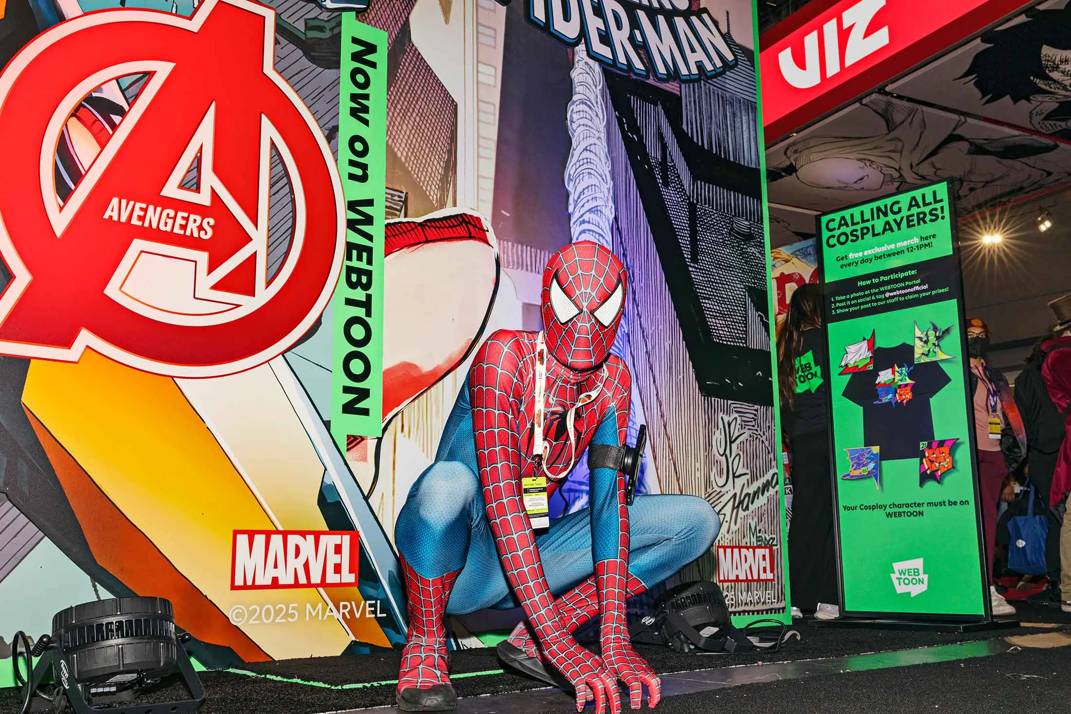 纽约漫展Webtoon展台前的蜘蛛侠角色扮演者